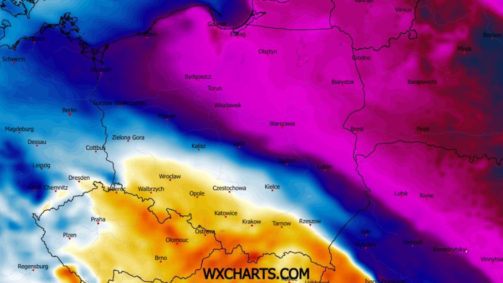 W drugiej połowie tygodnia do Polski napłynie lodowate powietrze z północnego wschodu Europy. Synoptycy zapowiadają, że może to być najintensywniejsza fala mrozów tej zimy. Nocami miejscami temperatura spadnie poniżej -20°C, a w niektórych regionach zbliży się do -25°C. Na ocieplenie trzeba będzie poczekać co najmniej do przyszłego tygodnia. Z danych Instytutu Meteorologii i Gospodarki Wodnej wynika, że obecna odwilż skończy się jeszcze przed weekendem, a każdy kolejny dzień przyniesie spadek temperatury. Najniższe wartości prognozowane są na przełomie obecnego i przyszłego tygodnia.
